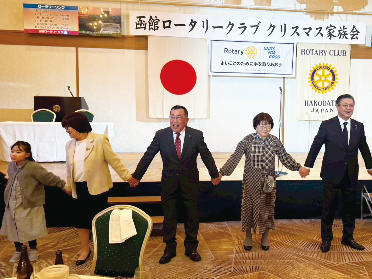 12月25日(木)年末恒例のクリスマス家族会を函館国際ホテルにて開催いたしました。お楽しみ大抽選会などで大いに盛り上がりました。最後は「手と手つないで」の合唱で一年間の活動を締めくくりました。会員の皆様、よいお年をお迎えください。