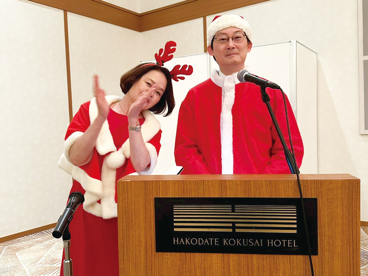 12月25日(木)年末恒例のクリスマス家族会を函館国際ホテルにて開催いたしました。お楽しみ大抽選会などで大いに盛り上がりました。最後は「手と手つないで」の合唱で一年間の活動を締めくくりました。会員の皆様、よいお年をお迎えください。
