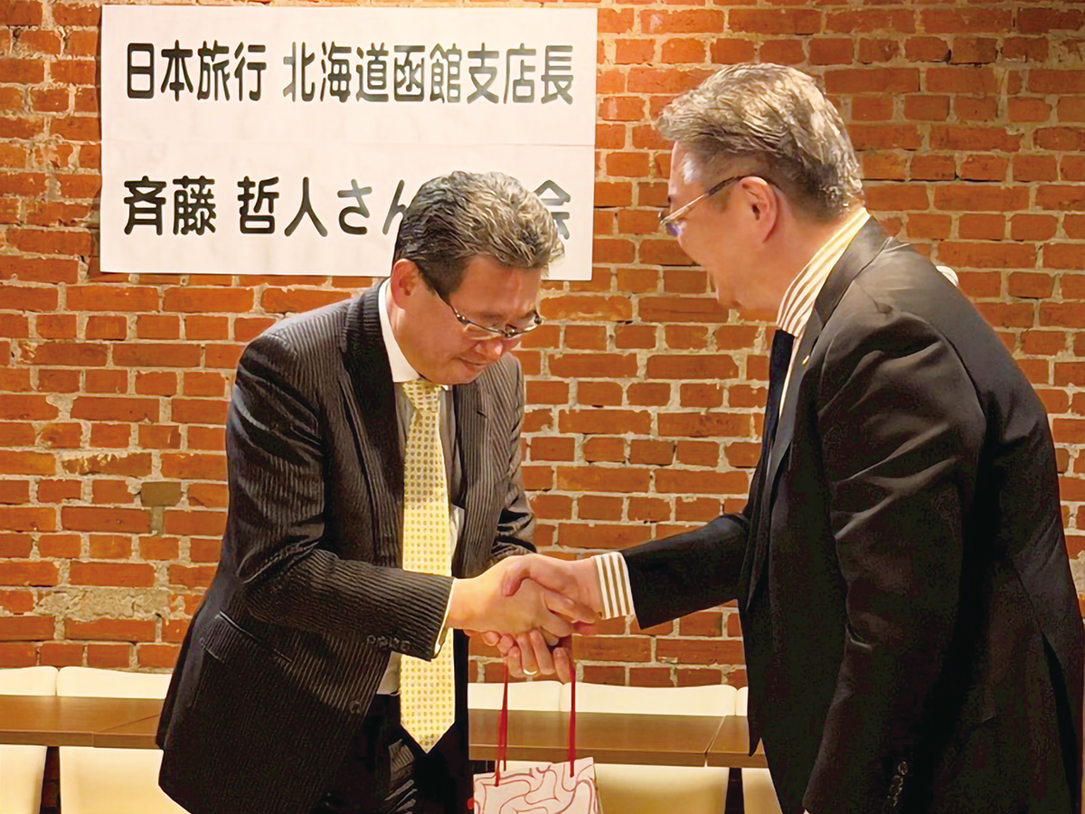斉藤 哲人会員の送別会を函館ビヤホールにて開催いたしました。在籍2年3ヶ月間、私たちメンバーまたクラブのチケットの手配などで動いていただきありがとうございました。今後ますますのご活躍を祈念いたしております。