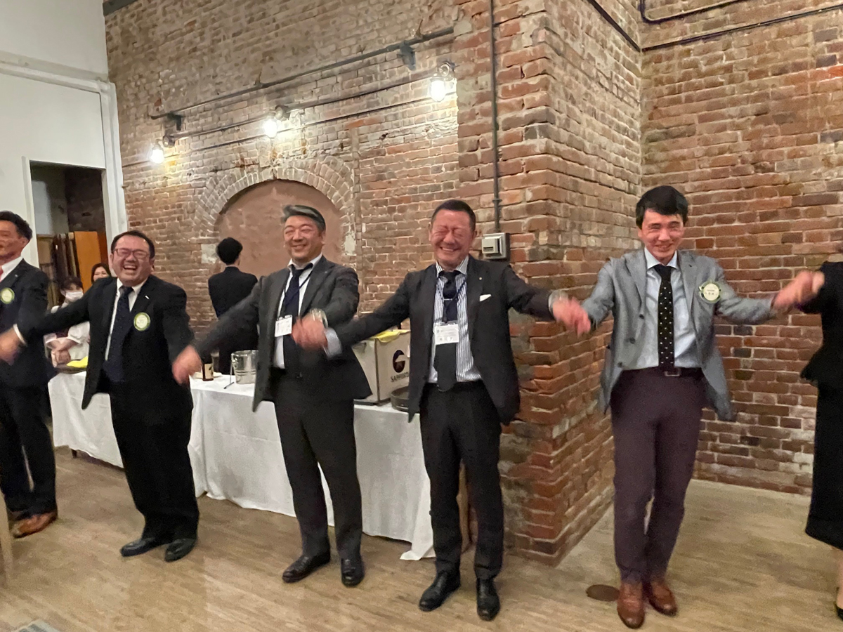 昨年に行われた青森RC創立70周年式典の話題や裏話など田中会長からお聞きし、記念品として2枚しか存在しないねぶたの原画の1枚を当クラブに寄贈いただきました。余興では江差姥神大神宮渡御祭のビデオ上映、木村香澄さんによる江差追分、津軽三味線日本一の杉本雅人さんとサフロ吉崎さんのスコップ三味線のコラボなど盛りだくさんの内容でした。翌日は親睦ゴルフコンペも開催され、2日間大いに懇親を深めました。青森RCの皆様、ありがとうございました。
